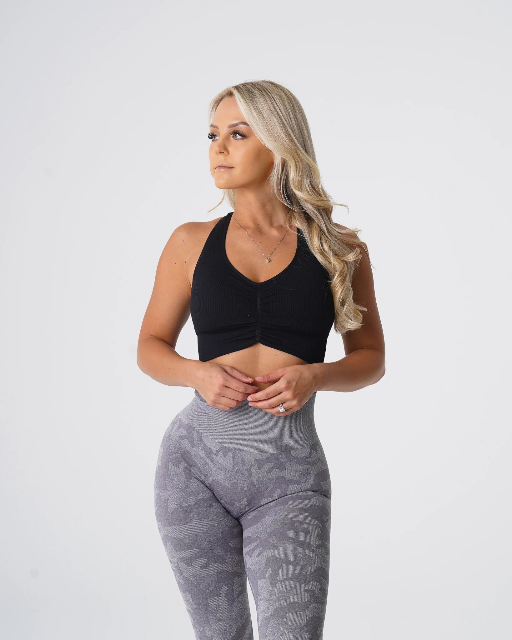 Pair this cinched seamless bra with our scrunch leggings or shorts for a cute and coordinated look that will take your workout style to the next level.