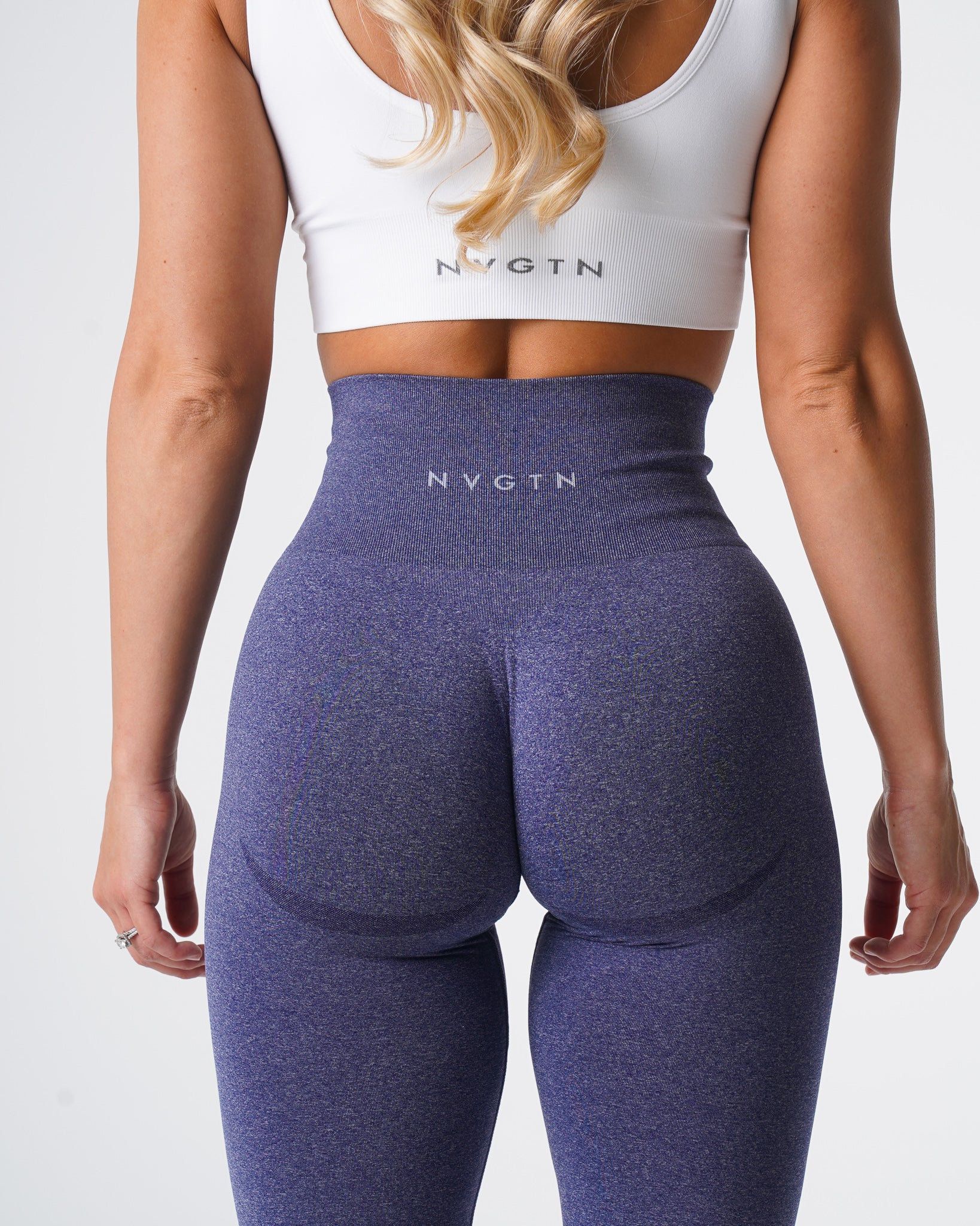 Elevate your workout wardrobe with the Nvgtn Indigo Curve Seamless Leggings. Designed to turn heads and provide you with the confidence to strut through the gym, these leggings feature: