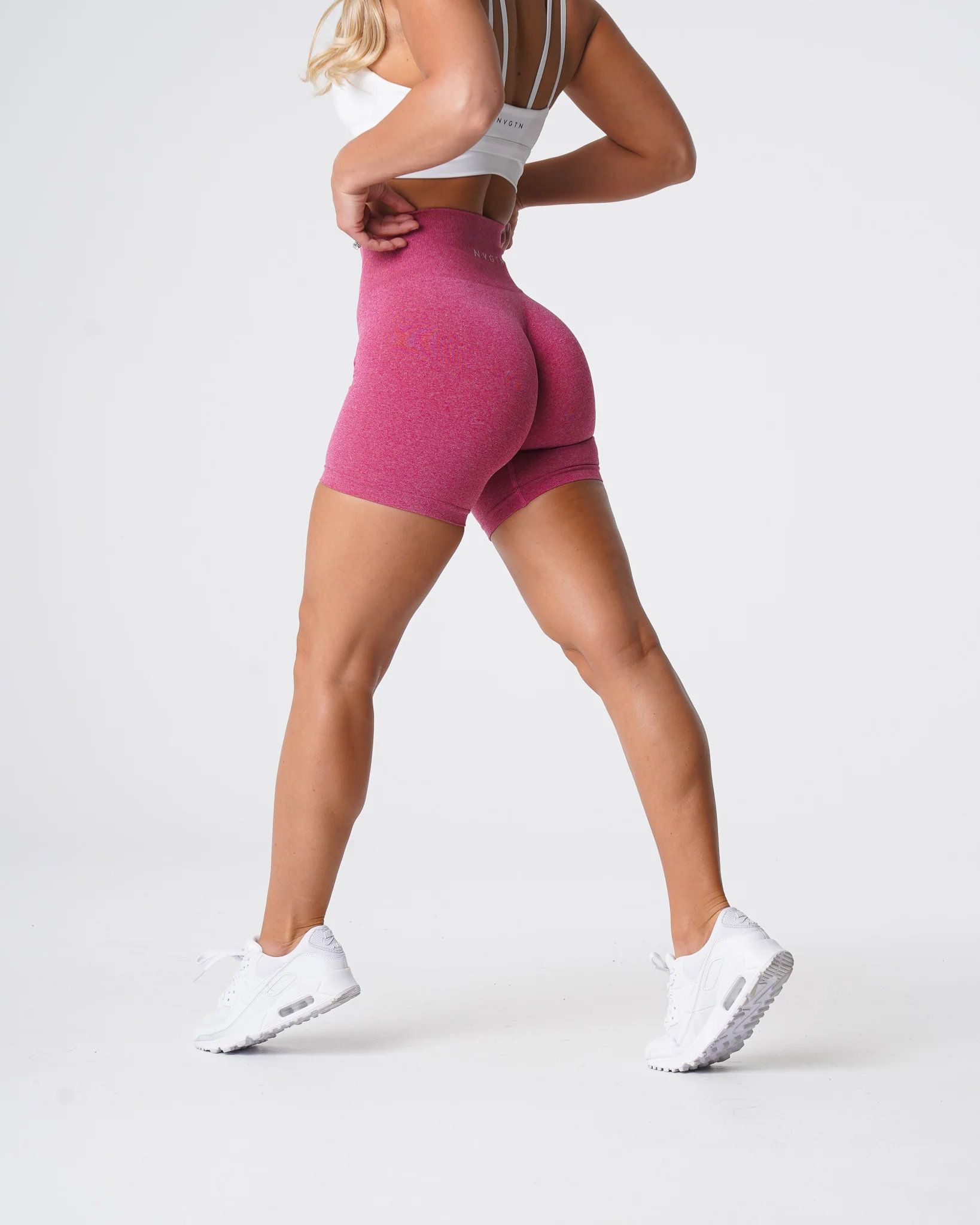 Introducing our signature seamless material now available in stylish shorts. The Nvgtn Crimson Pro Seamless Shorts are designed for both comfort and performance. These shorts feature a conservative length that allows for unrestricted movement, making them ideal for workouts or casual wear. The form-flattering waistband provides slight compression, ensuring a secure fit without sacrificing comfort.
